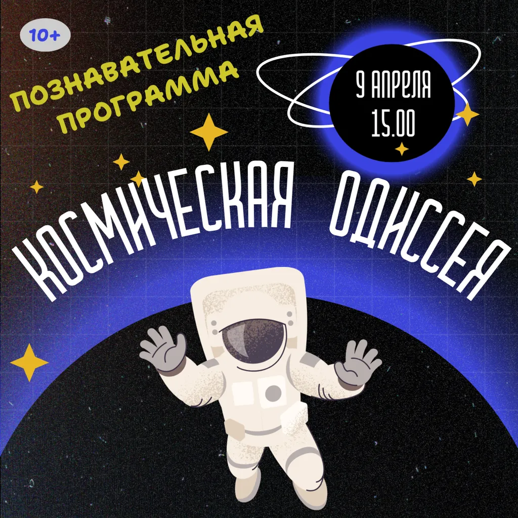 Участники Одиссеи отправятся в захватывающее путешествие по звёздам и планетам, узнают много интересного о космосе и его загадках, откроют интересные факты и увлекательные истории о космонавтах и их подвигах. На программе «Космическая Одиссея» состоится знакомство с историей освоения космоса и современными космическими исследованиями. В читальном зале гостей ждет яркая книжная выставка с современными изданиями о космосе и его покорением человеком.